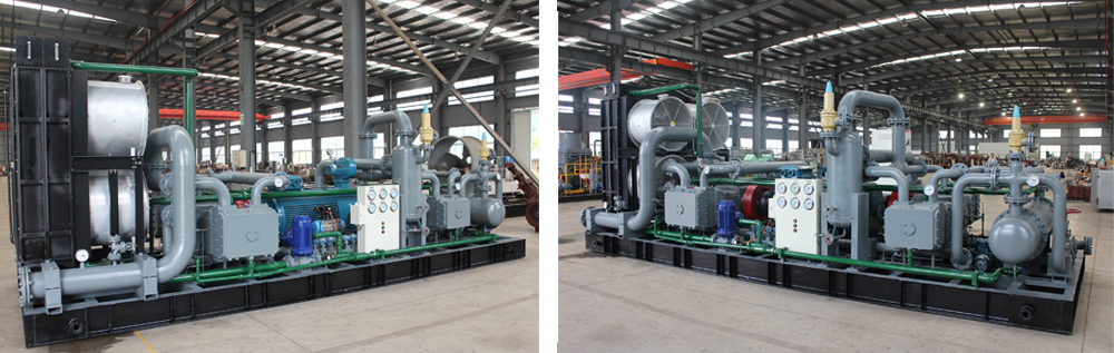 3、壓縮機(jī)主機(jī)及輔機(jī)等設(shè)備全部安裝在橇架上,運(yùn)行平穩(wěn)可靠,整體撬裝便于壓縮機(jī)的運(yùn)輸與安裝。
